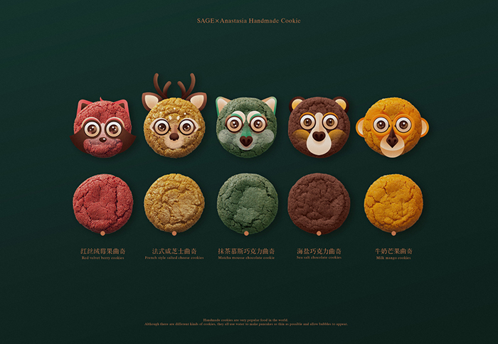 Anastasia納斯塔是一家專注高端手工曲奇的甜品品牌,創始人是一位美麗優雅的女性,她希望把天然優質的產品理念融入品牌視覺,讓購買與品嘗它的顧客能感受到產品的心意與生活的詩意。用味蕾喚醒森林的手工曲奇,赤橙黃綠棕,食材的天然色彩打破視覺邊界,變身可愛的森林精靈,讓天然的美味伴著森林的微風,拂過每一個陽光耀眼的日子。創新設計的隨身小食盒,讓你將有趣的森林精靈盡收囊中。