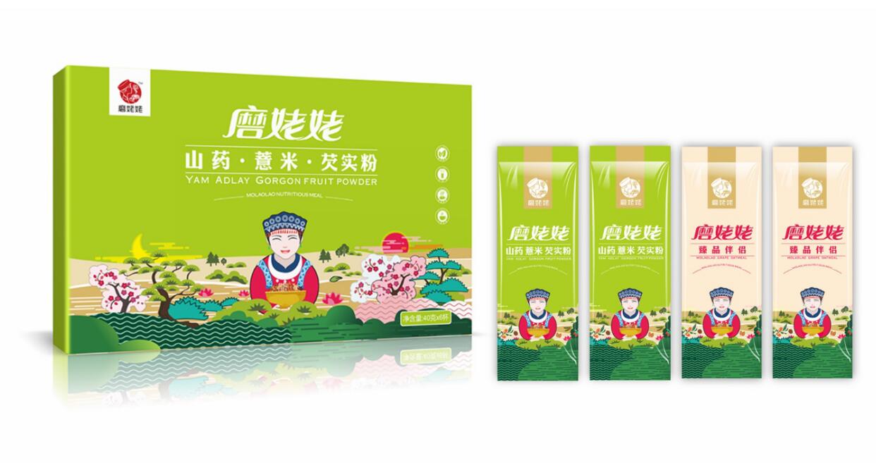 當(dāng)產(chǎn)品在市場(chǎng)上得到消費(fèi)者的認(rèn)同后,一個(gè)偶然的機(jī)會(huì),信立浩達(dá)與磨姥姥達(dá)成合作,為磨姥姥提供品牌形象設(shè)計(jì)、產(chǎn)品包裝設(shè)計(jì),用文創(chuàng)品牌的思維,塑造了磨姥姥新的品牌形象,45天內(nèi),我們從武漢到長(zhǎng)沙,從長(zhǎng)沙到武漢,經(jīng)過(guò)了大量的市場(chǎng)調(diào)研、腦力風(fēng)暴,挖掘了中國(guó)傳統(tǒng)食文化、養(yǎng)生文化,設(shè)計(jì)出了磨姥姥的品牌主畫(huà)面,品牌標(biāo)志、系列的產(chǎn)品包裝設(shè)計(jì),還有招商網(wǎng)站、招商畫(huà)冊(cè)、宣傳廣告、海報(bào)等:益元八珍營(yíng)養(yǎng)早餐, 一天一杯磨姥姥,健康快樂(lè)一整天!山藥薏米芡實(shí),我要想吃就吃不長(zhǎng)肉!紅豆薏米杏仁,我要貌美如花人人夸!核桃芝麻黑豆,養(yǎng)發(fā)烏發(fā)。武漢農(nóng)產(chǎn)品包裝設(shè)計(jì)公司信立浩達(dá)用品牌設(shè)計(jì)的力量協(xié)助磨姥姥在全國(guó)招商成功!